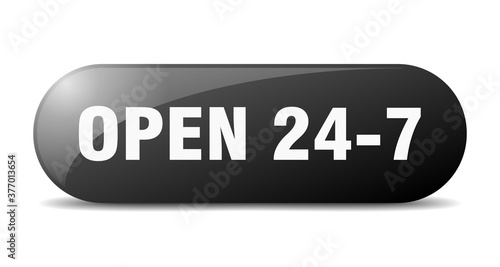 open 24 7 button. sticker. banner. rounded glass sign