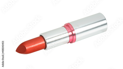 Open red lipstick silver tube