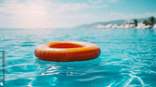 Orange Inflatable Ring Floating in a Blue Pool on Sunny Day