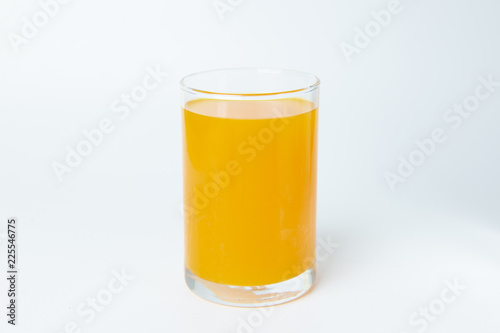 Orange juice in the glass on white background isolate.