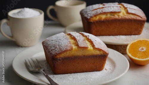 orange loaf cake with powdered sugar topping