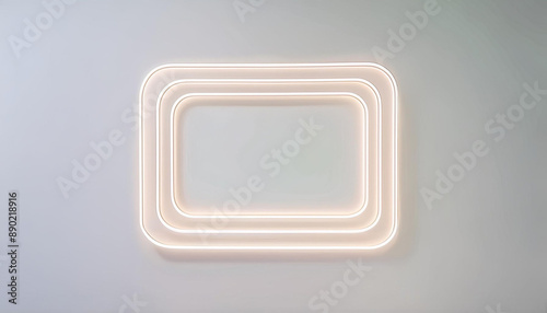 Orange rectangle neon lamp frames on pale gray wall background