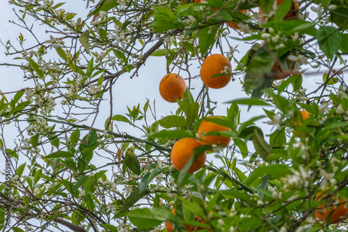 Orange tree branches. Citrus fruit.Concept of agriculture.