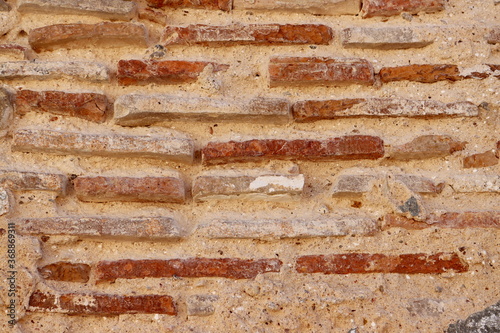 Orange wall made of old bricks. Background, grunge and texture photography. Background for exterior or interior design