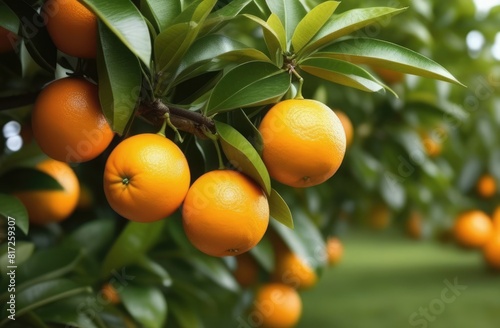 Oranges growing on a tree branch