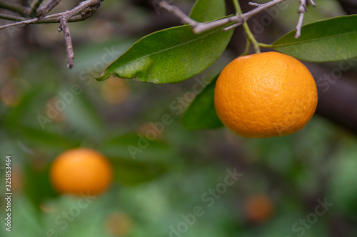 Organic and natural tangerines on tree.