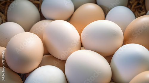 Organic Chicken Eggs Straight from the Farm. Suitable for Nature-themed Marketing Campaigns, Farming Publications, and Healthy Living Blogs. Top View.