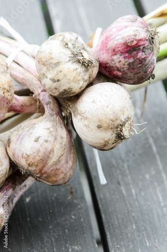 Organic garlic harvest in a home garden