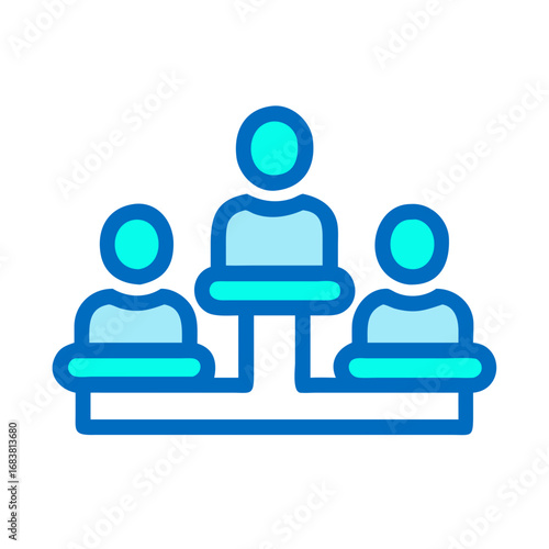 Organization chart illustration in blue showing hierarchy and structure
