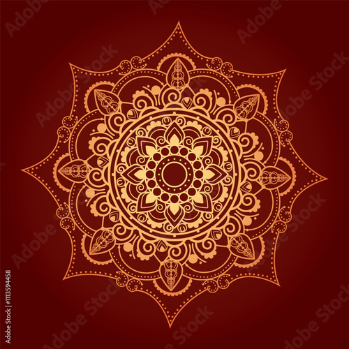 Ornamental Geometric luxury Golden mandala vector design with red background
