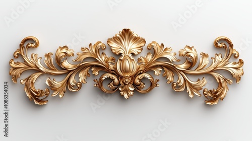 Ornate Baroque Style Decorative Panel in Gold Finish Featuring Intricate Leaf and Floral Motifs, Ideal for Elegant Interior Design and Restoration Projects