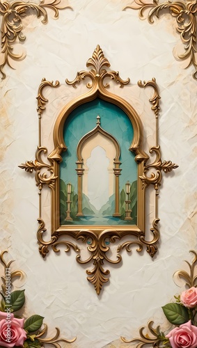 Ornate Gold Frame with Scenic Vista - Vintage Decorative Artwork