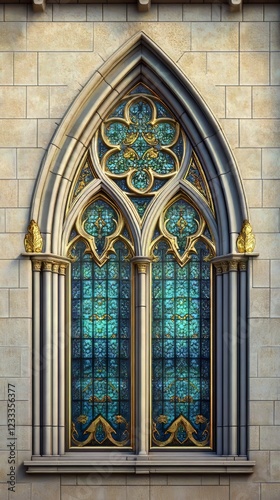 Ornate Gothic arched stained glass window