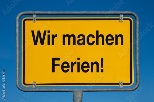 Ortsschild gelb WIR MACHEN FERIEN