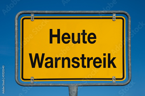 Ortsschild mit blauem Himmel HEUTE WARNSTREIK