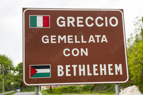 Ortstafel von Greccio, Rieti, Italien