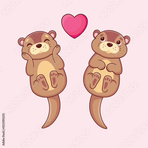 Otters in love. Cartoon characters. Vector illustration.