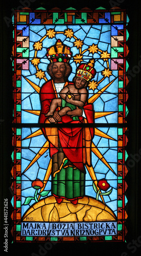 Our Lady of Marija Bistrica stained glass at the Church of the Visitation of the Virgin Mary in Cirkvena, Croatia