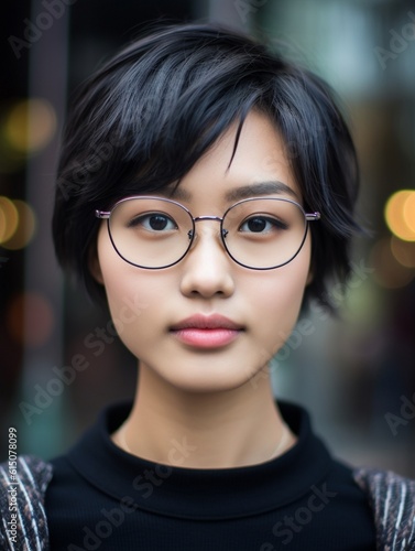 Outdoor closeup portrait of beautiful happy asian American girl teenager female young, AI generative