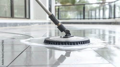 Outdoor Floor Cleaning with High-Pressure Washer and Soap Foam for Sparkling Clean Tiles