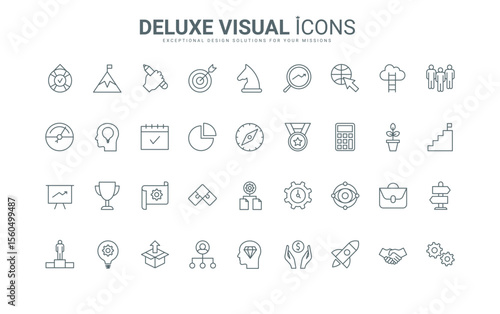 Outline business project, success strategy and creative idea symbols, support of partnership and start development of organization. Startup thin black and red line icons set vector illustration