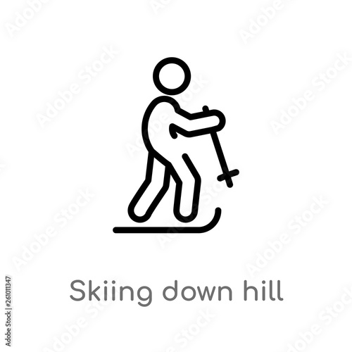 outline skiing down hill vector icon. isolated black simple line element illustration from sports concept. editable vector stroke skiing down hill icon on white background