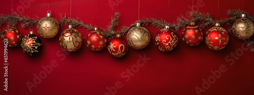 Overhead Opulence: Christmas Ornaments Against a Crimson Canvas