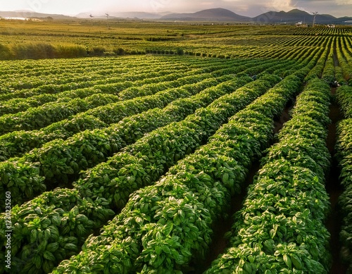 overhead view of a large field of basil with swaying plants landscape photography agriculture rural scene