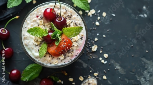 Overnight oats with Greek yogurt cherry and tomato