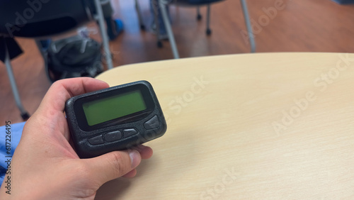 pager beeper device rests on a desk, representing the power of instant communication, connectivity, and the evolution of technology