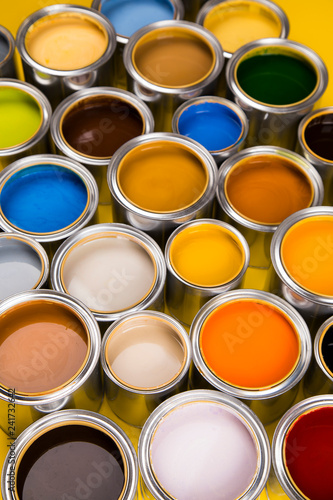 Paint cans color palette, yellow background