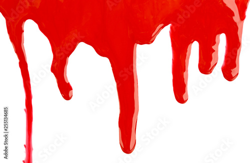 paint dripping isolated on white. liquid red paint runs off