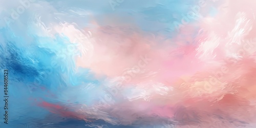 Painting of a sky with blue and pink hues, fluffy clouds, creating a dreamy atmosphere, ideal for artistic backgrounds.