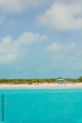 Paisaje de hermosa playa con colores turquesa bajo el cielo azul
