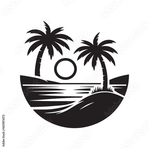Palm Tree with Sea Beach – Tropical Summer Vector Illustration