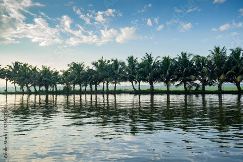 palm trees on the lake with reflection,Coconut tree,Kerala backwaters Alleppey