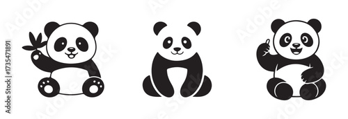 panda bear icon set, panda silhouette logo sticker, cartoon panda icon, mascot design, minimal character art, vector illustration EPS 10.