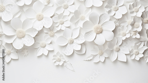 Paper cut flowers and leaves, Fresh spring nature background. Floral banner, poster, flyer template with copy space.