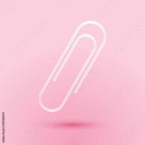 Paper cut Paper clip icon isolated on pink background. Paper art style. Vector.