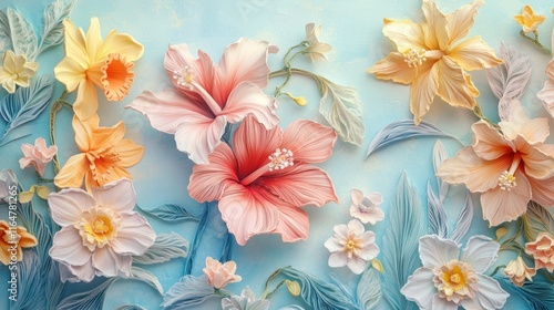 Paper Flower Bouquet on a Blue Background