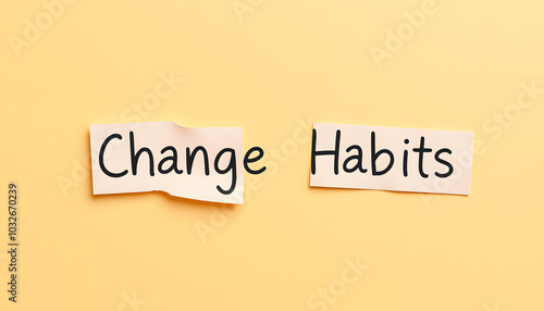 Paper notes with phrase Change Habits on color background, flat lay isolated with white highlights, png