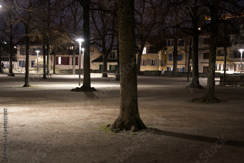 Parc named Lindenhof at the old town of Zürich on a winter night. Photo taken February 24th, 2022, Zurich, Switzerland.