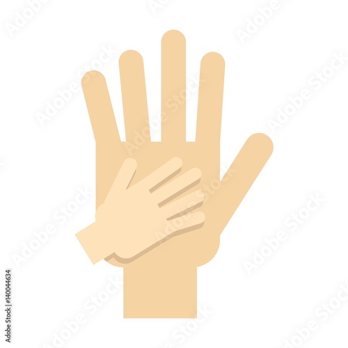 Parent and child hands together icon, flat style