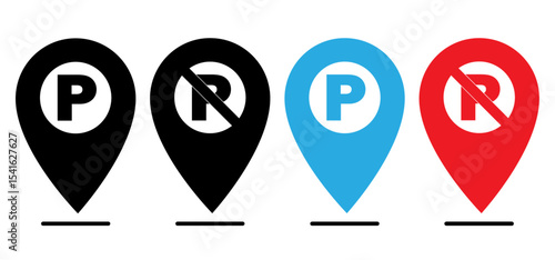 Parking and No parking icon sign inside of location map icon with white background . No parking Vector icon set. Parking prohibition. Prohibition road signs set. Vector illustrator, symbol.