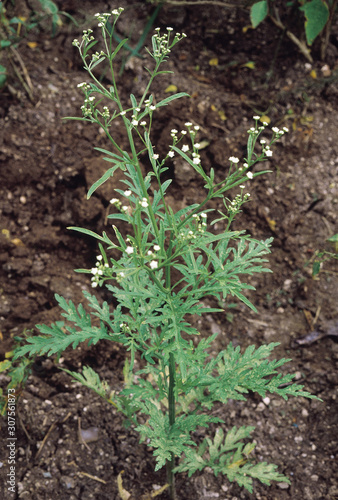Parthenium Hysterophorus. Family: Compositae. A weed, native to North America which has created havoc by spreading in most of the agricultural areas of India. Some people are allergic to Parthenium.