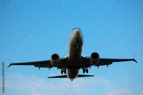 Passenger jet plane flies in the sky. Air transport industry