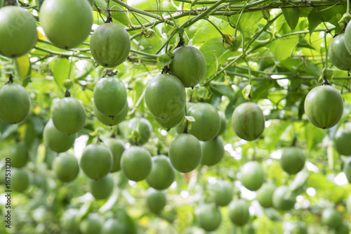 Passion fruit on the tree in passion fruit farm.