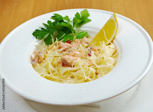 Pasta fettuccine with salmon