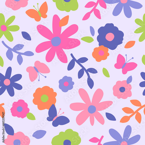 Pastel cute flower and butterfly pattern vector background.