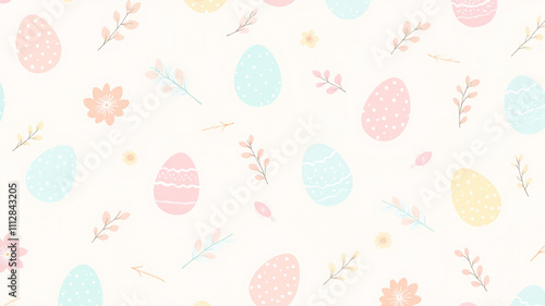 Pastel easter egg and floral pattern on light background for spring celebrations